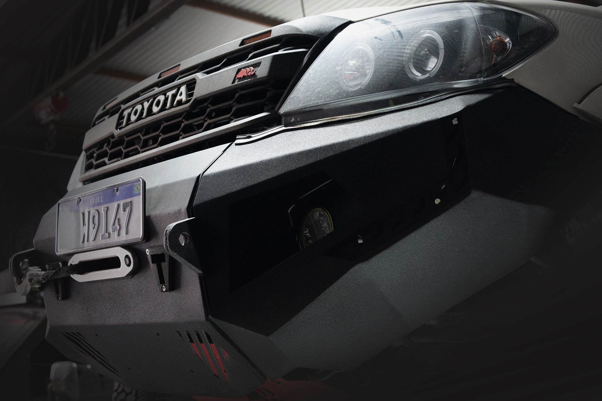 Fabricado em aço SAE 1020 com espessura de 3,2mm. Base de guincho em chapa SAE 1020 com espessura de 6,3mm. Cortado à laser. Dobra com processo CNC. Soldas com processo MIG/TIG. Estrutura interna reforçada com travas laterais. Processo de pintura automotiva. Fundo epoxi altos sólidos Sikens. Tinta PU microtexturizada desenvolvida pela Brutos Offroad. Ou opcional na cor do veículo.
